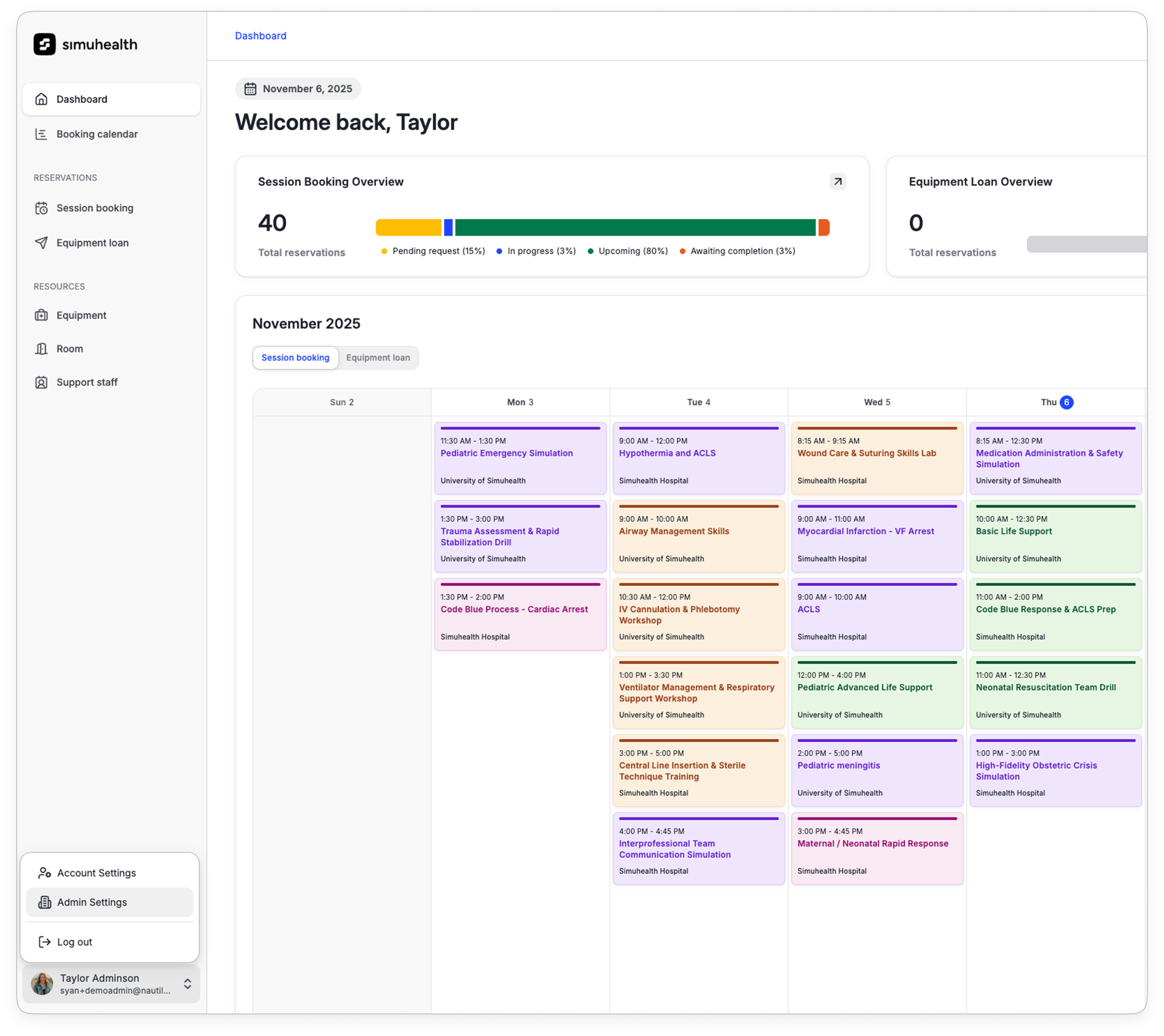 First thing you’d need to do as an admin is to tell Simuhealth about your physical locations – whether you’re a single simulation centre or a large health network with multiple facilities.